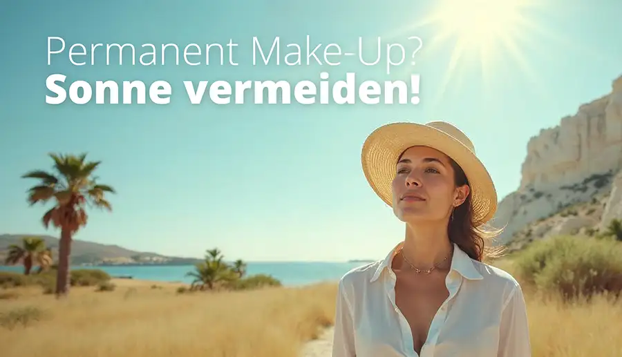 - Sonnenschutz nutzen – UV-Strahlen sind einer der Hauptgründe für das Verblassen von Permanent Make-Up. Eine Sonnencreme mit hohem Lichtschutzfaktor sollte daher regelmäßig aufgetragen werden, besonders bei Aufenthalten im Freien oder im Urlaub. Eine Kombination mit schützender Kleidung und Sonnenbrillen kann den Effekt verstärken. UV-Strahlung kann auch indirekt durch reflektierende Oberflächen (z. B. Wasser oder Schnee) das Pigment beeinflussen, wie oben bereits erwähnt.